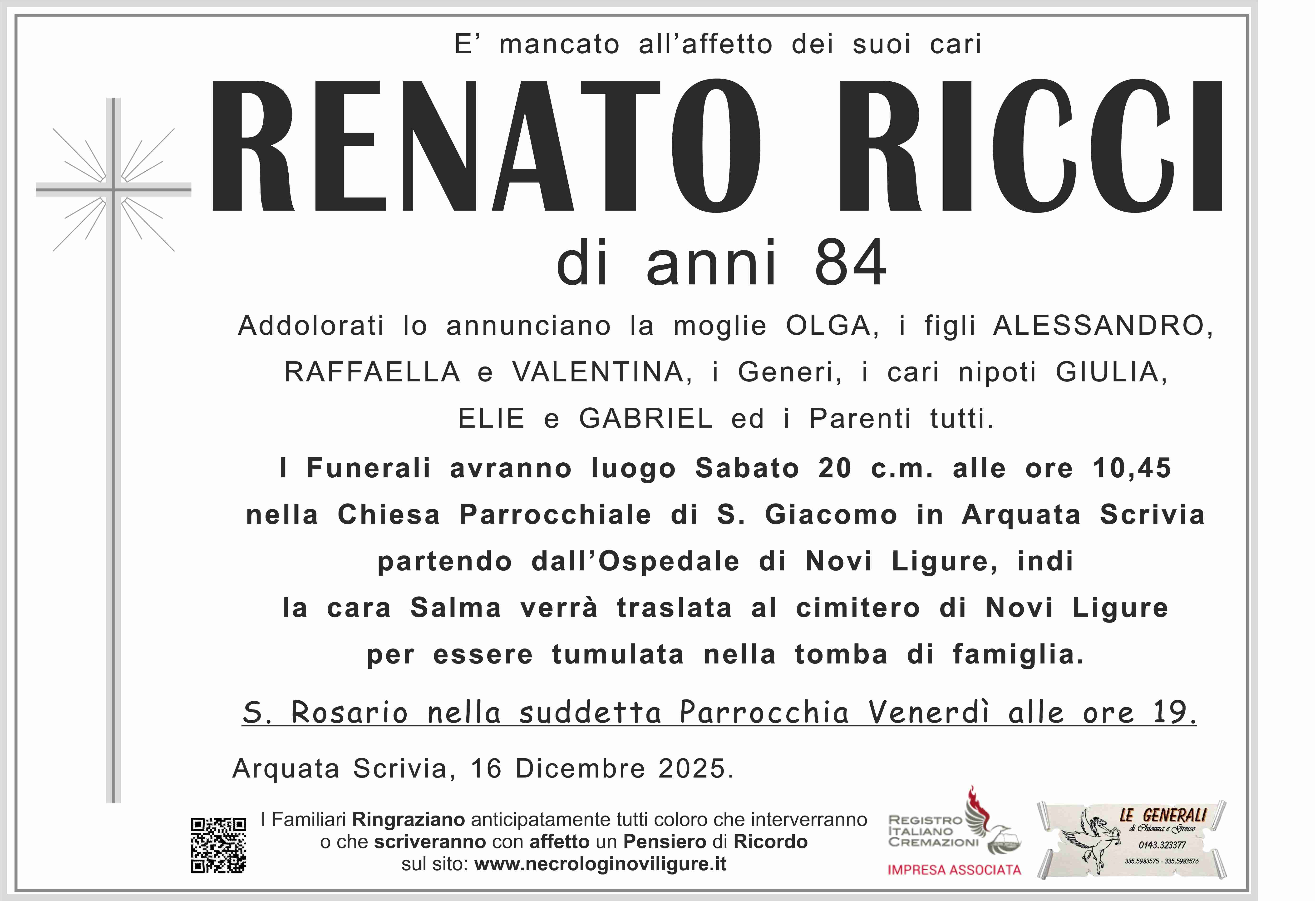 I familiari ringraziano anticipatamente tutti coloro che parteciperanno alla cerimonia funebre