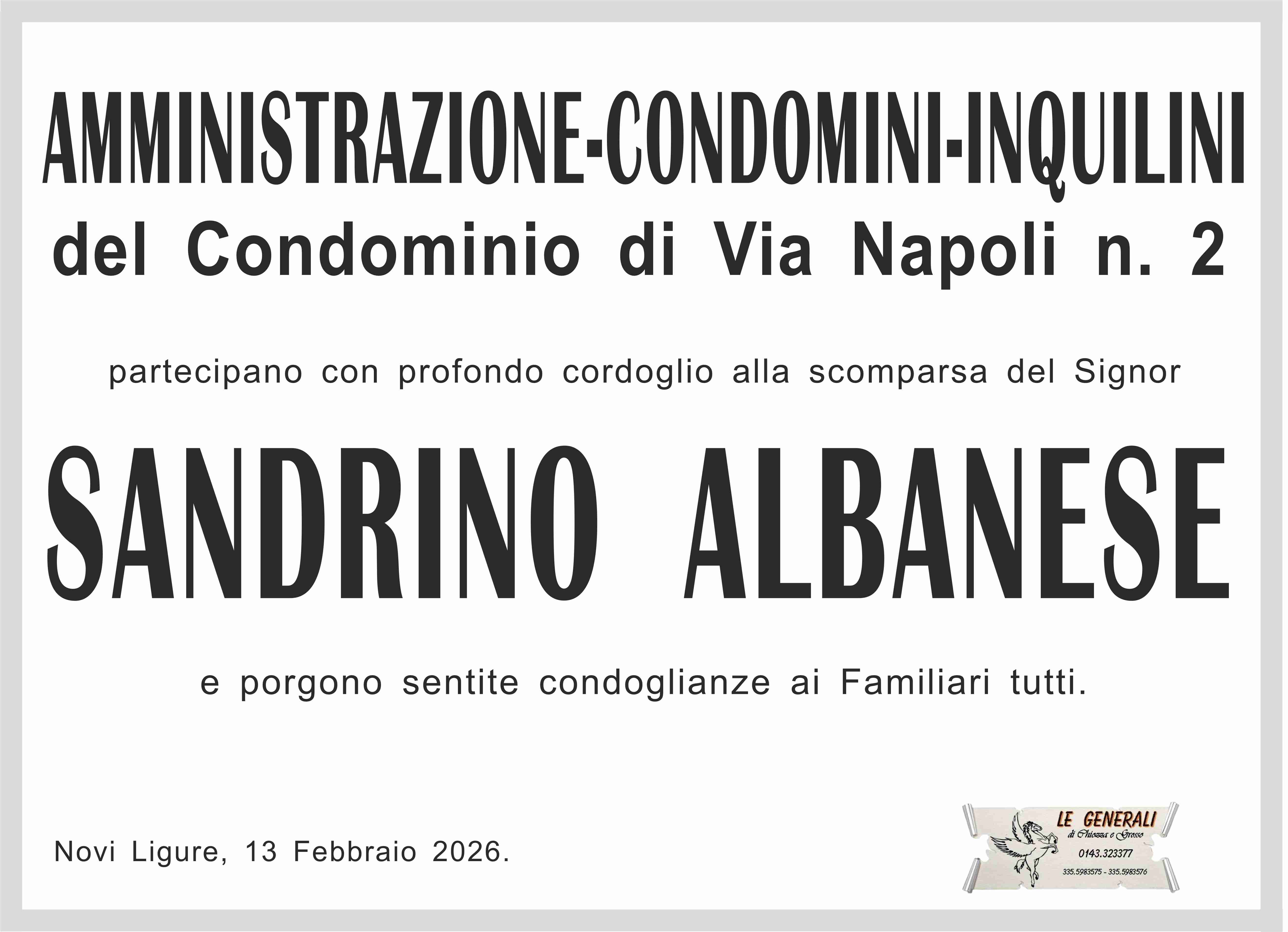 I familiari ringraziano anticipatamente tutti coloro che parteciperanno alla cerimonia funebre