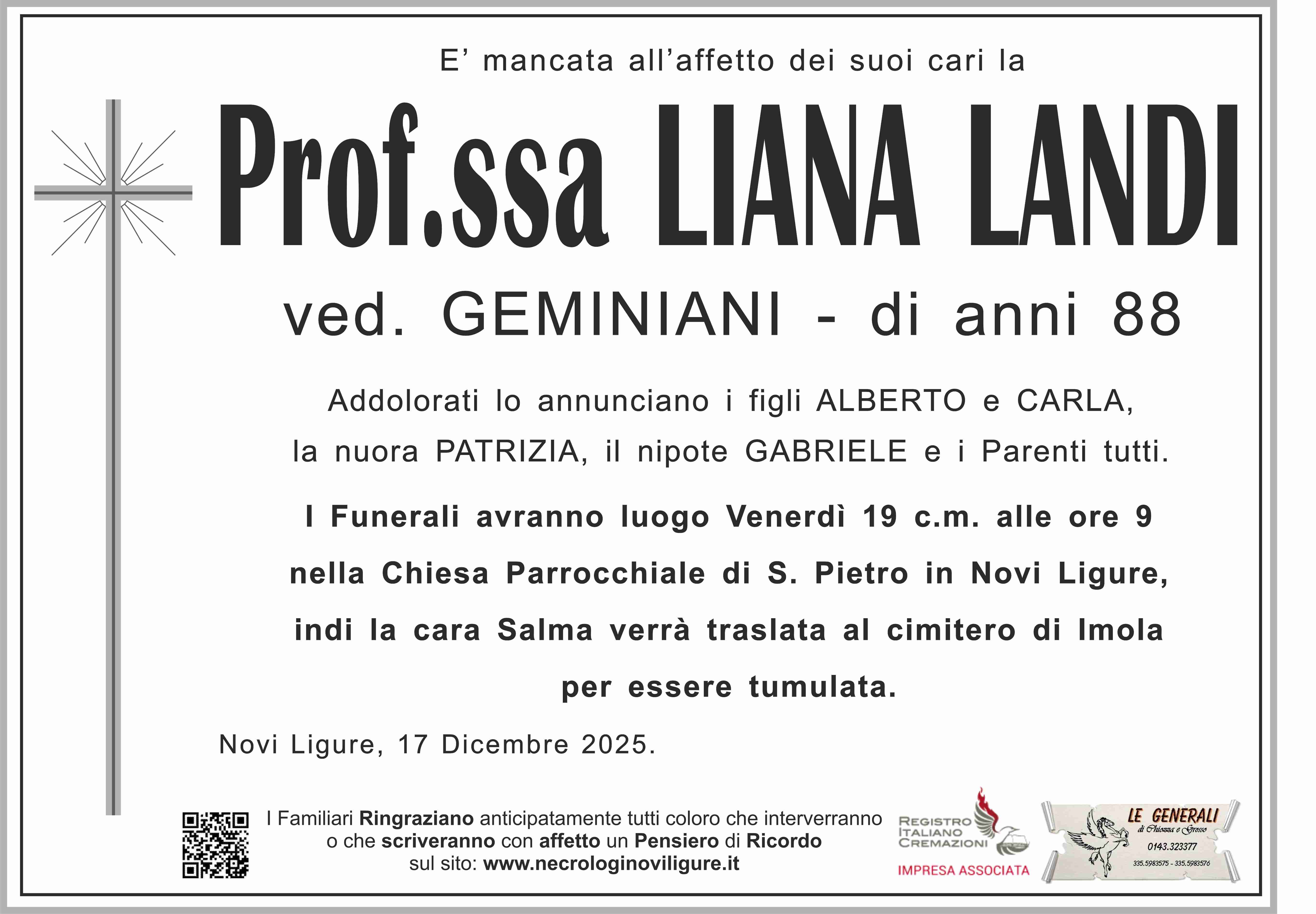 I familiari ringraziano anticipatamente tutti coloro che parteciperanno alla cerimonia funebre e tutti coloro che scriveranno con affetto un Pensiero di Ricordo.