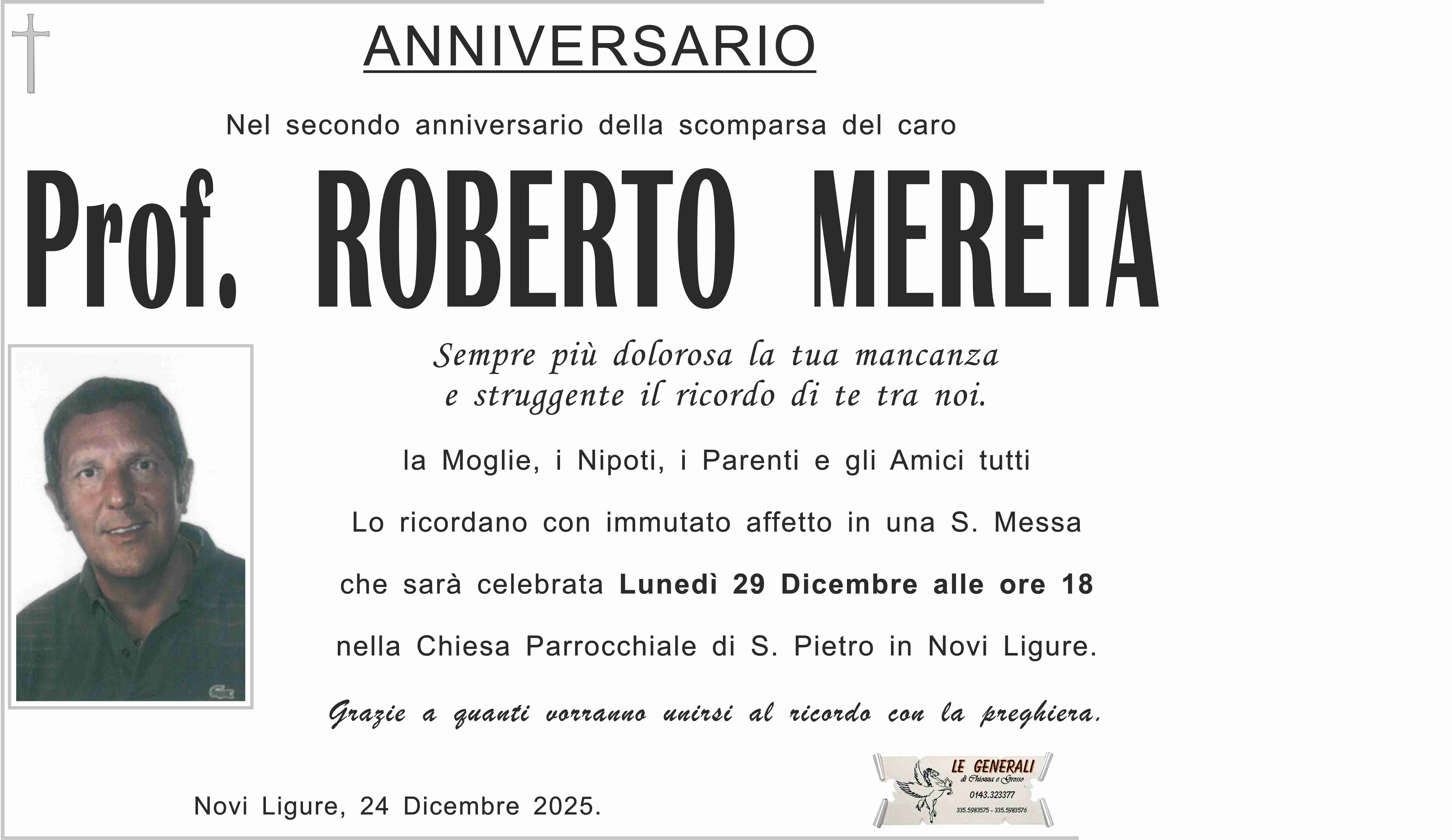 A nome del Centro Studi “In Novitate” e mio personale partecipo al profondo dolore per la scomparsa del chiarissimo prof. Roberto Mereta, nostro ottimo collaboratore ed associato, ai suoi cari porgo le mie