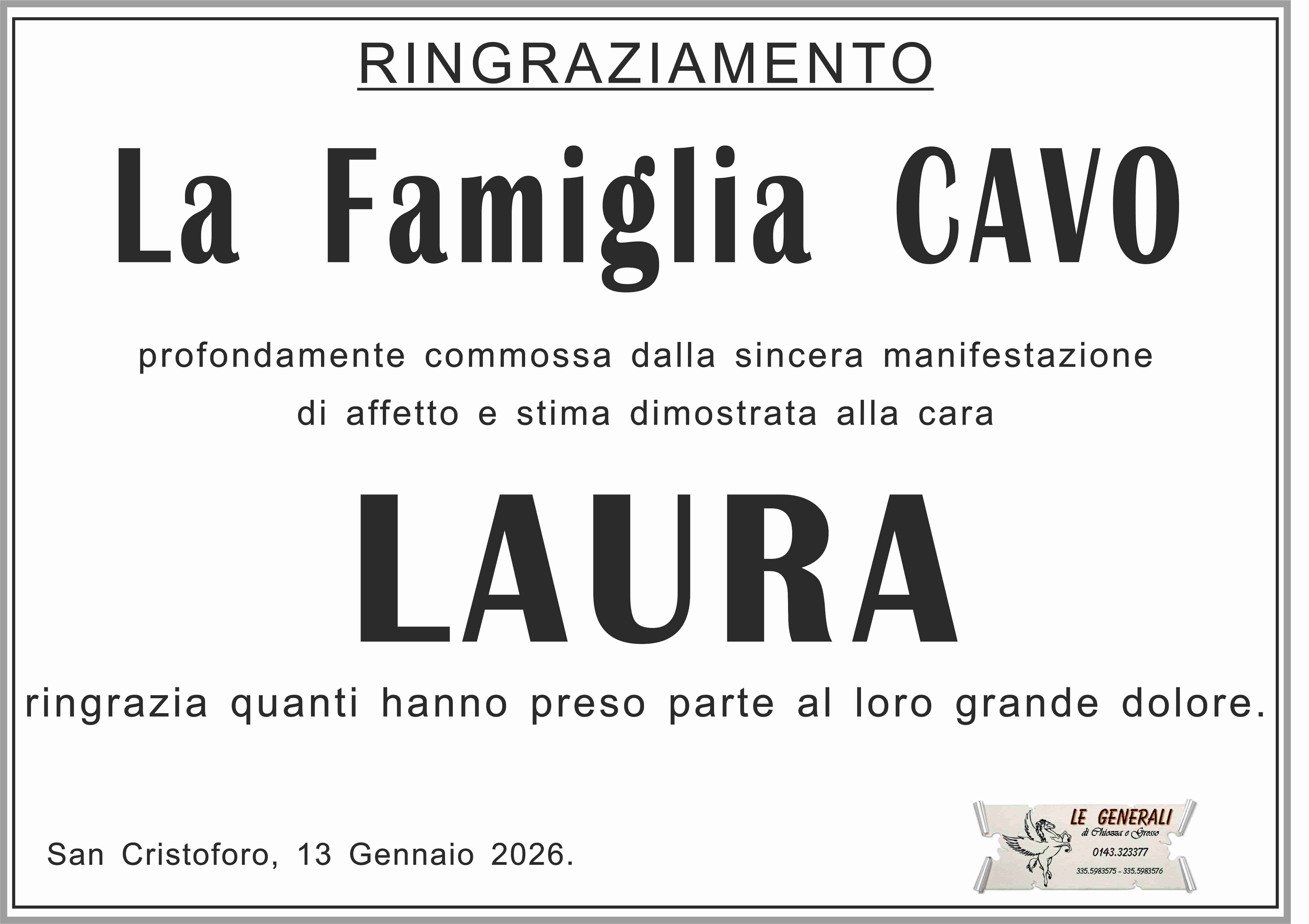I familiari ringraziano anticipatamente tutti coloro che parteciperanno alla cerimonia funebre